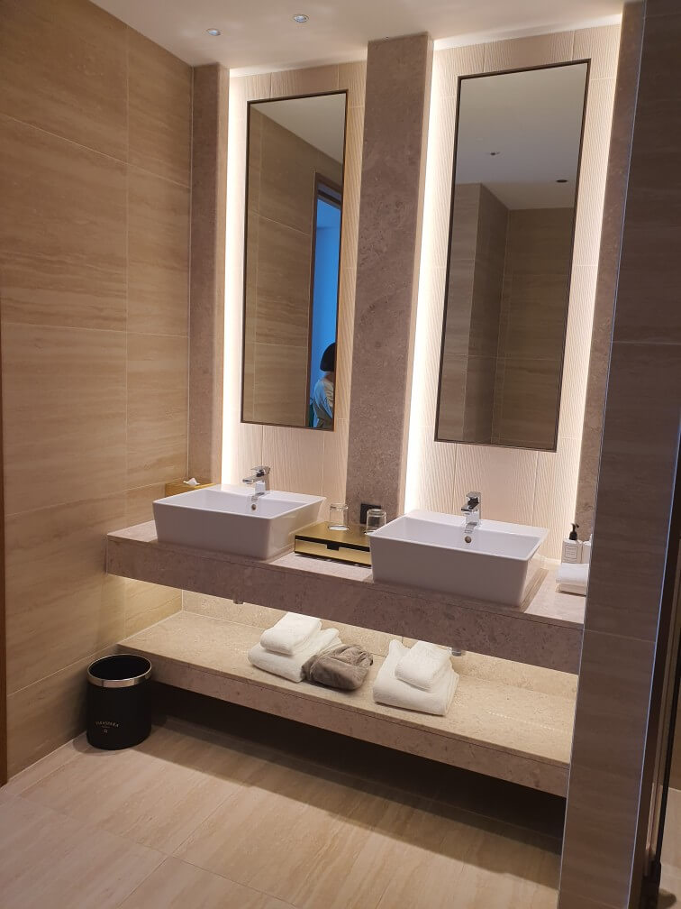 팀버 스위트 룸에서 꽤나 인상적이었던 부분이 화장실입니다. 거의 방 크기정도로 큰 사이즈에 모던한 디자인으로 되어있는 욕실이 너무 예뻤습니다. 여행의 피로를 풀수 있도록 베스쏠트까지 준비되어 있었습니다.